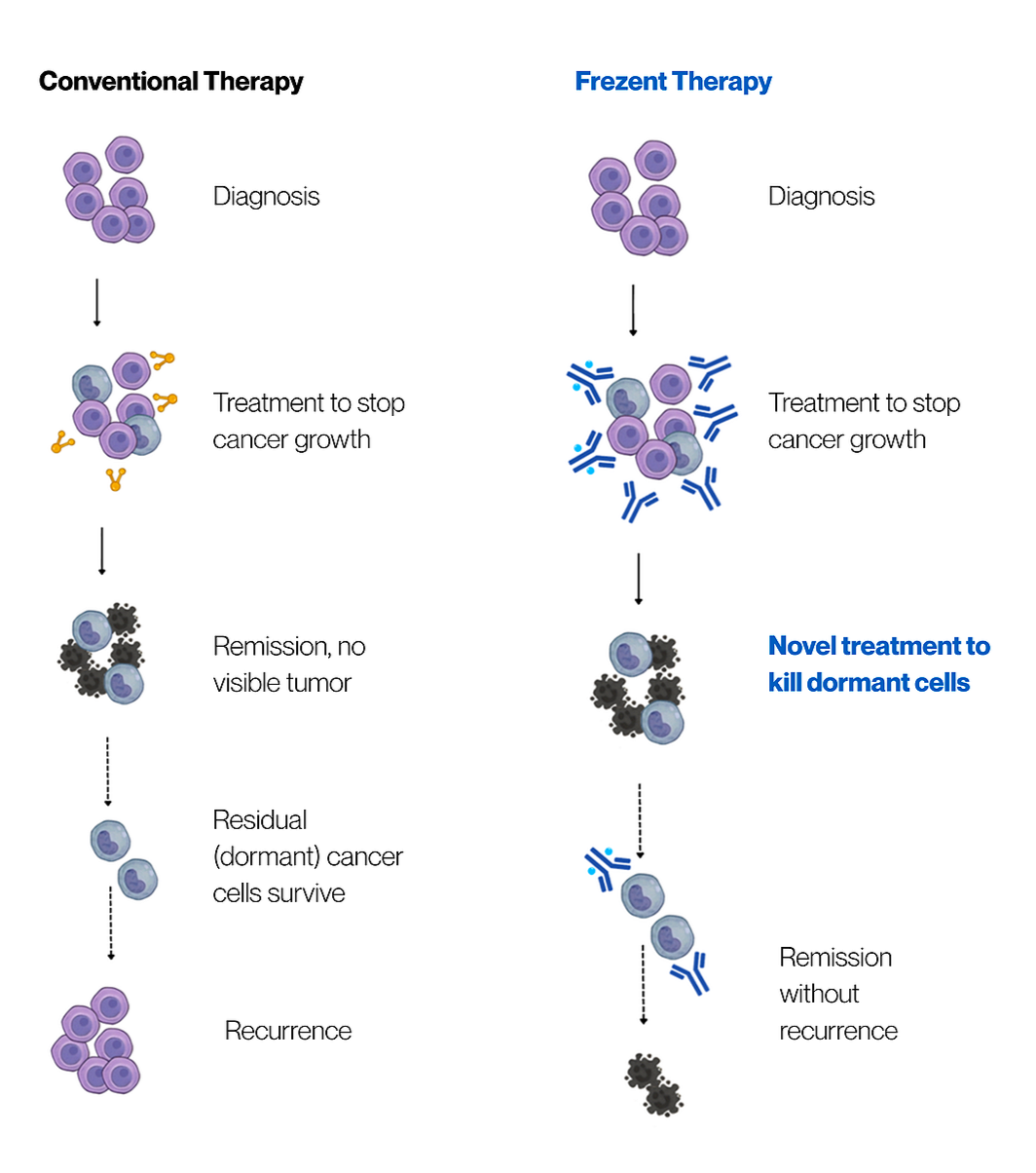 Frezent’s approach is first of its kind, designed to disrupt the metabolic foundation of dormancy to prevent the cancer from coming back.