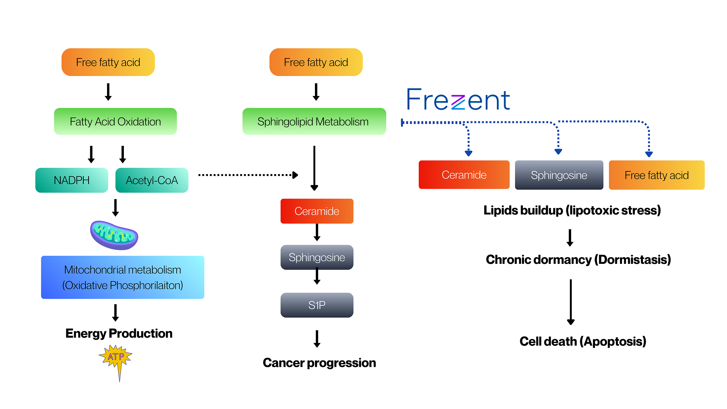 Frezent’s antibodies block lipid metabolism in cancer cells, cause lipotoxic stress and lead to apoptosis.